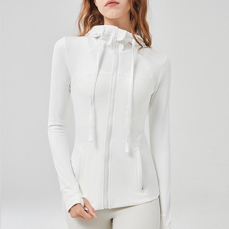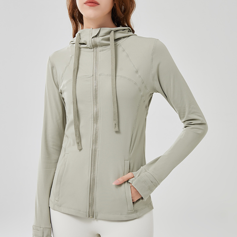 Nude hooded sportswear women's jacket long sleeve zipper tight yoga wear