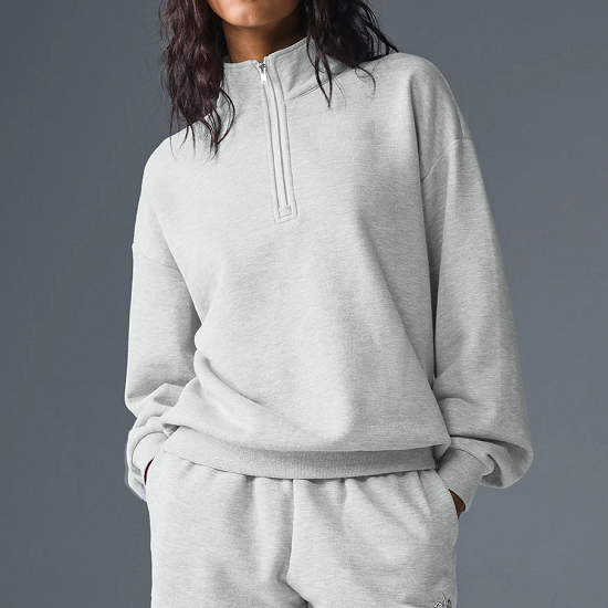 Experience the perfect blend of comfort and minimalism with this ALO-inspired quarter-zip sweatshirt. Crafted from premium French Terry cotton, it offers a soft, breathable feel with a clean, relaxed silhouette. The 1/4 zip design adds a sporty edge, perfect for layering pre- or post-workout, or styling into your everyday streetwear look.