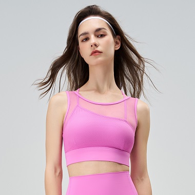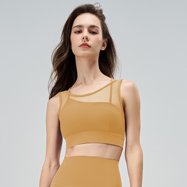 Fake Two Sports Underwear Women's Mesh Splicing Breathable Fitness Yoga bra Tank Top