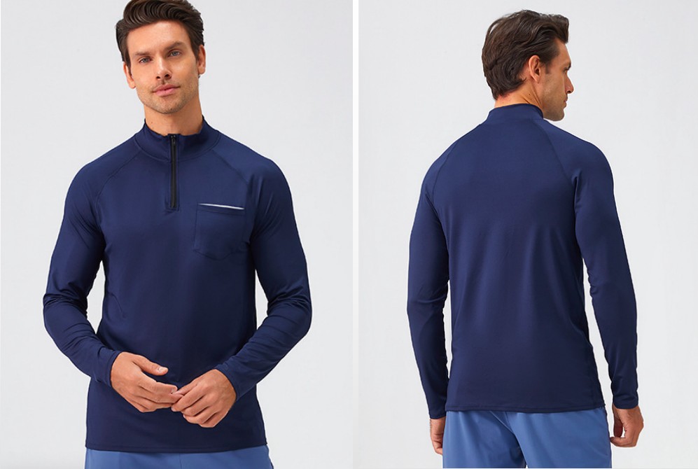 Men's fitness wear stand collar sports hoodie half zipper quick dry running top