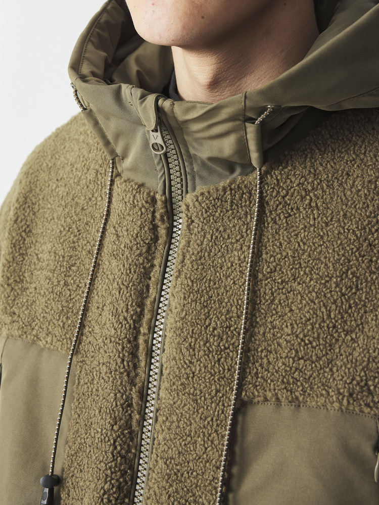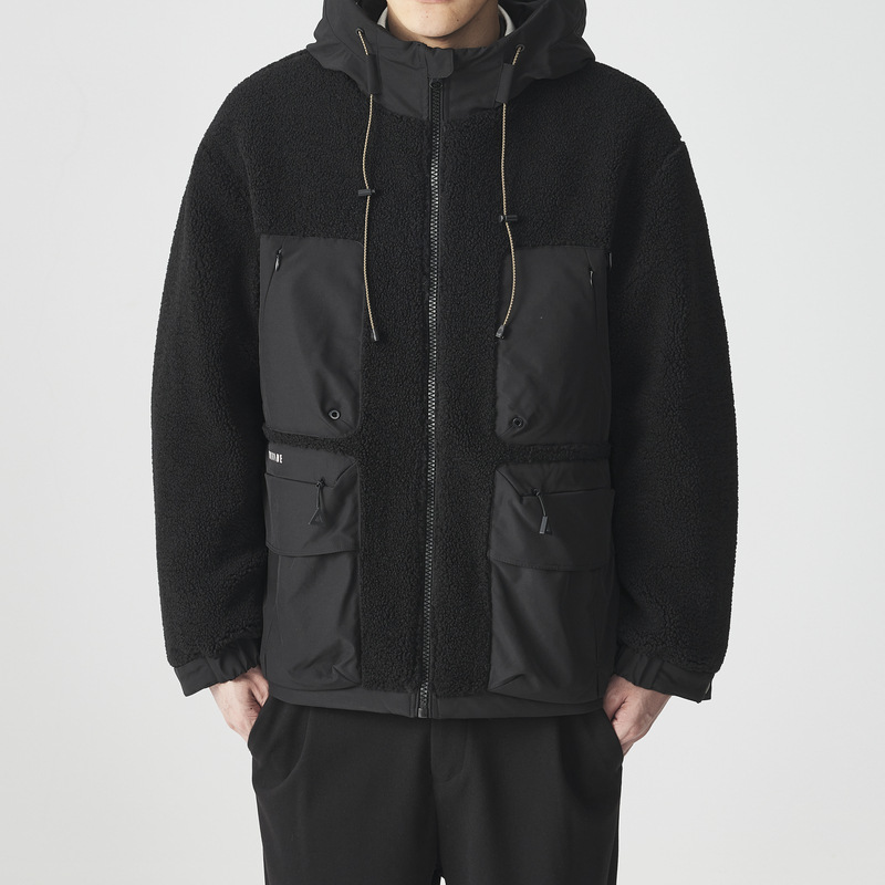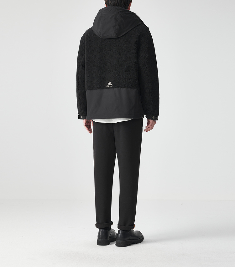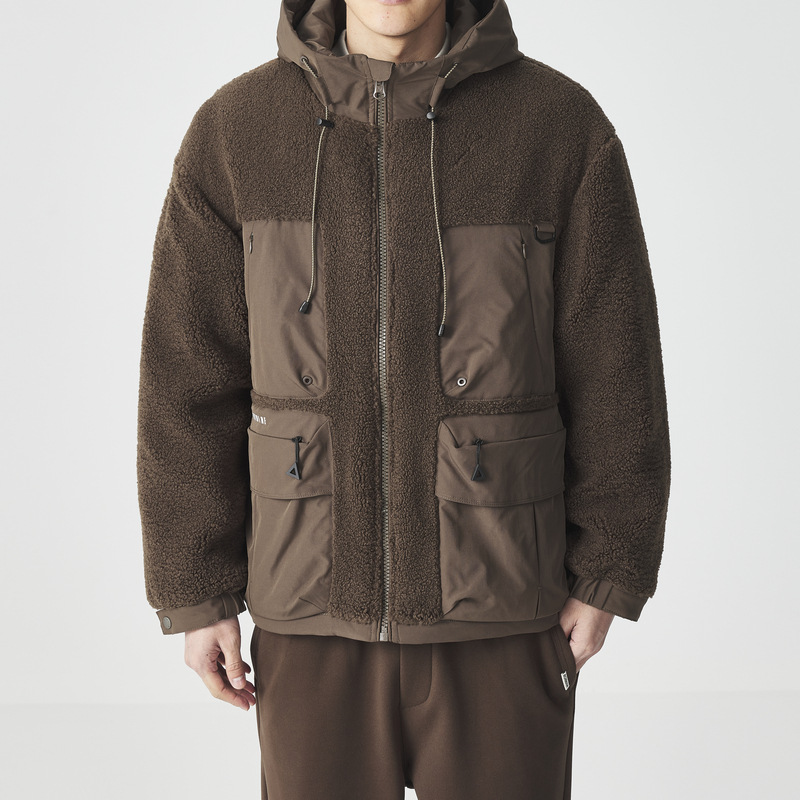 Polar fleece patchwork hooded jacket men's winter outdoor simple men's cotton clothing