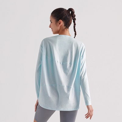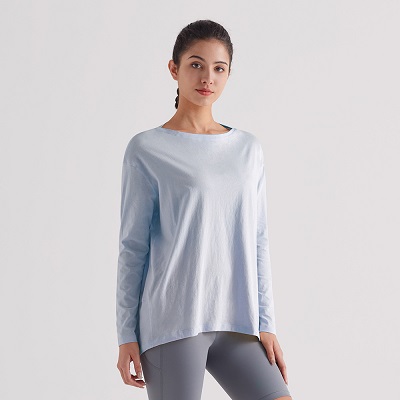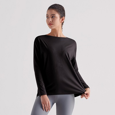Женские бегущие с длинными рукавами T - Рубашка с упругим круглой шеей для похудения йоги