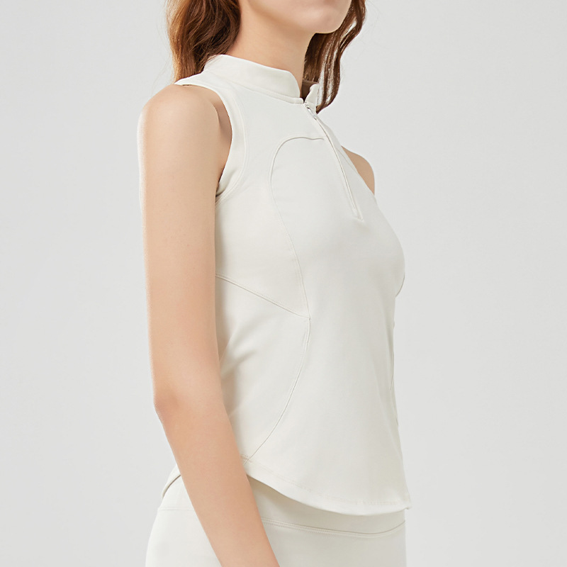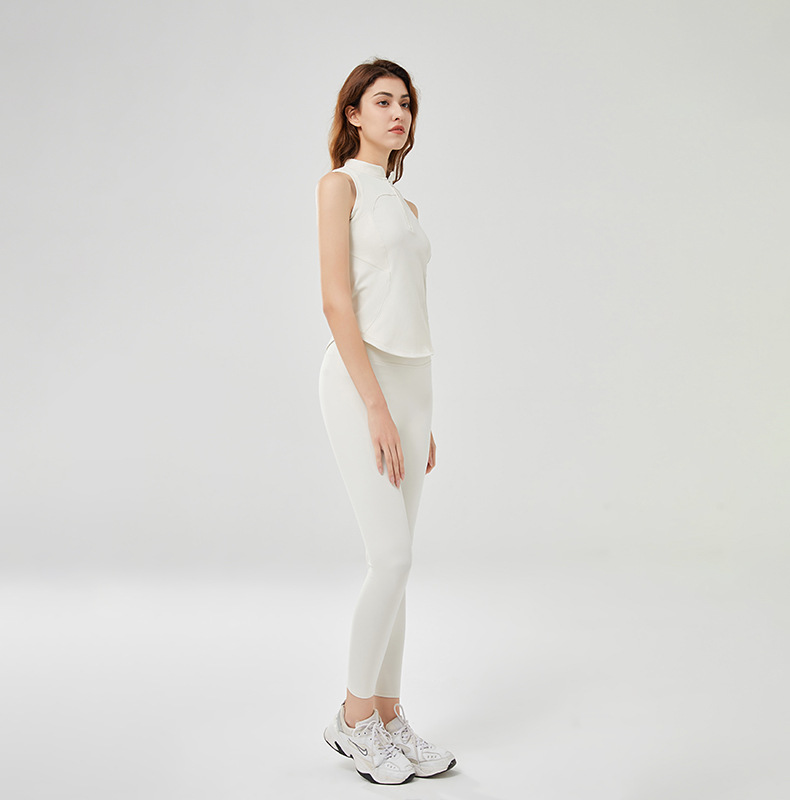 Sleeveless vest gym wear half zipper breathable nude fabric running exercise yoga wear
