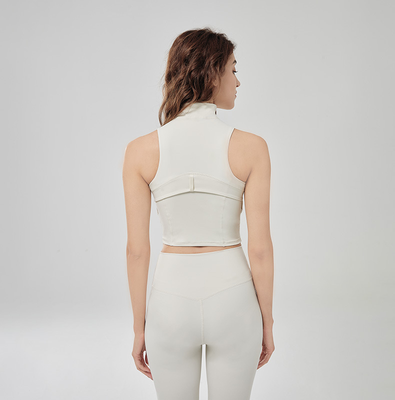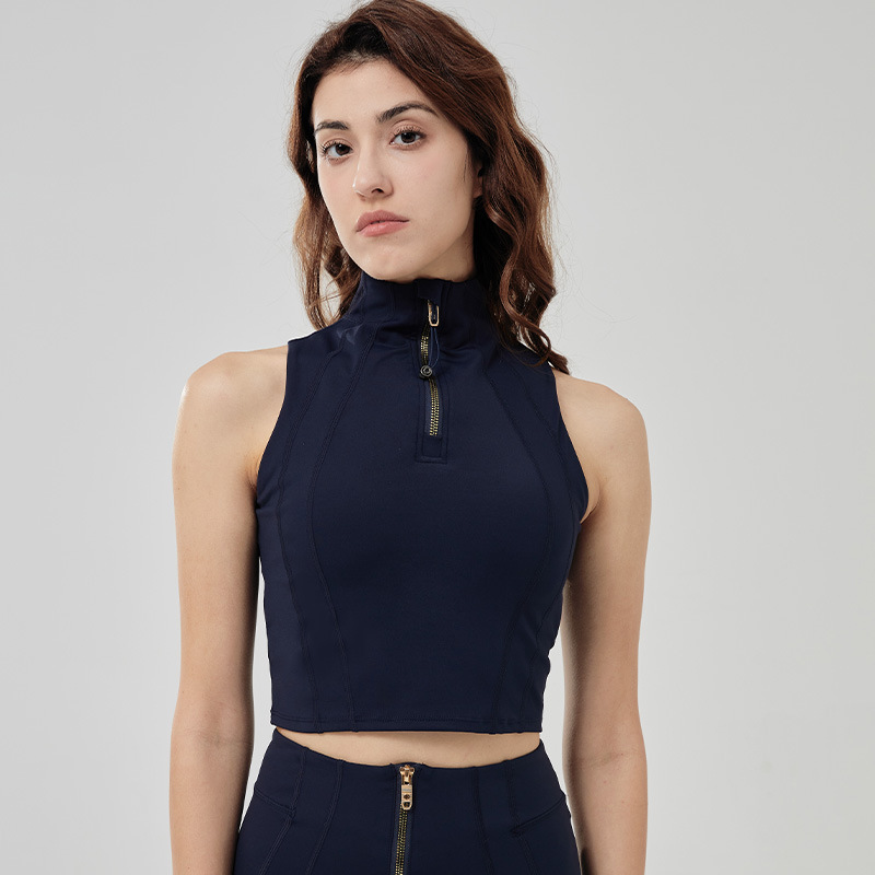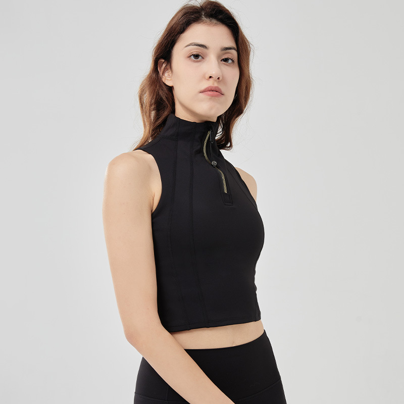 Sleeveless vest top half-zipper concealed neckline fast fashion fitness bra