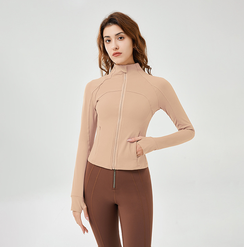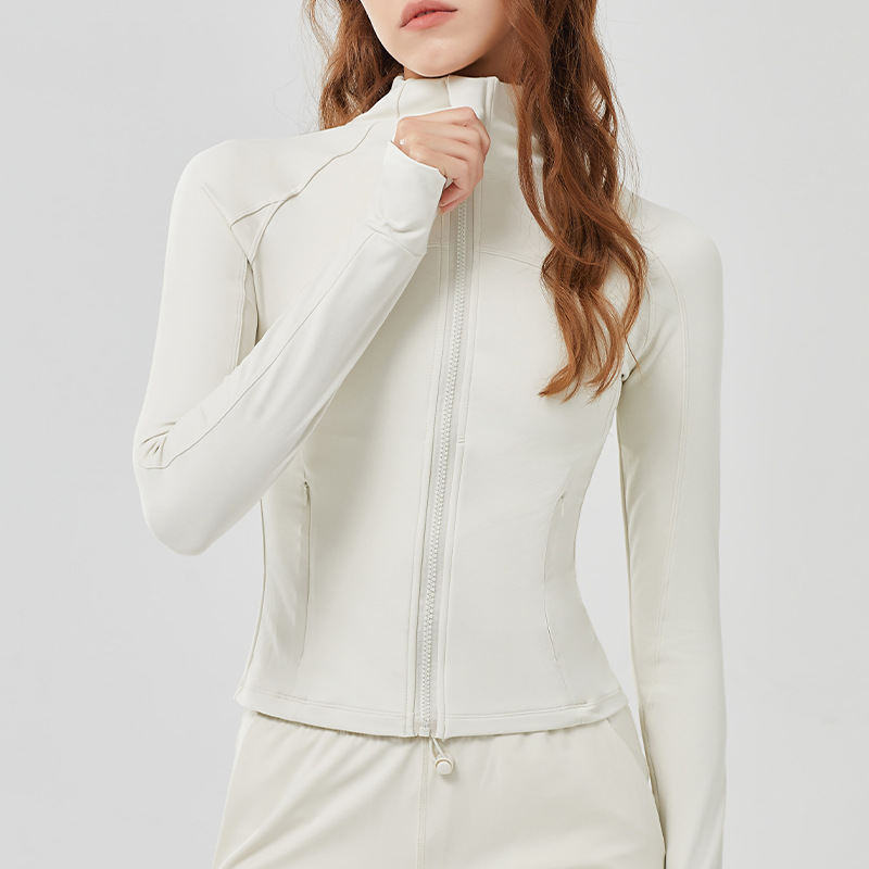 Slim zip up stand collar gym shirt top running sports long sleeve yoga wear jacket