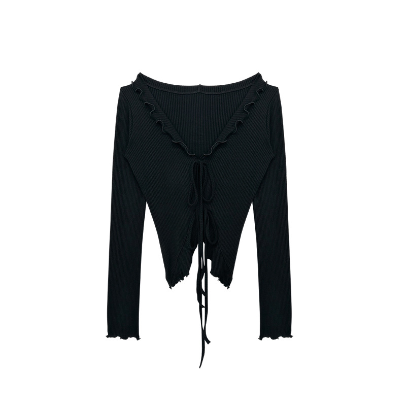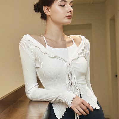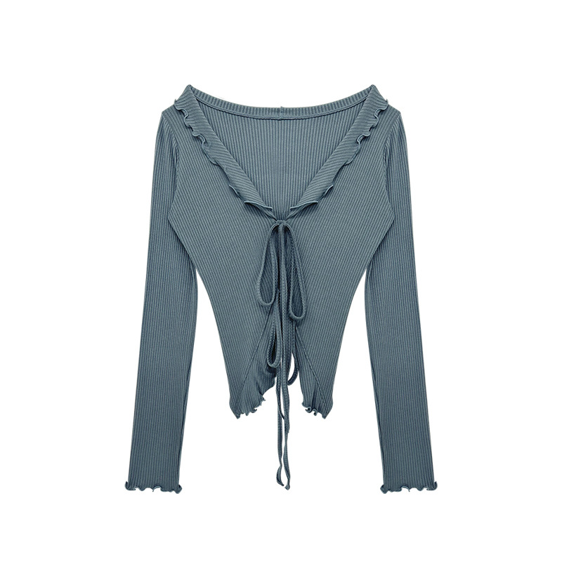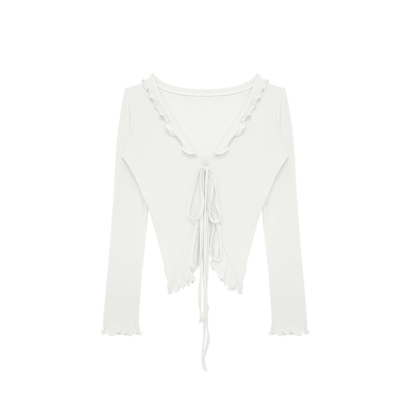 wave fungus edge long sleeved outdoor yoga tied up sweet cardigan