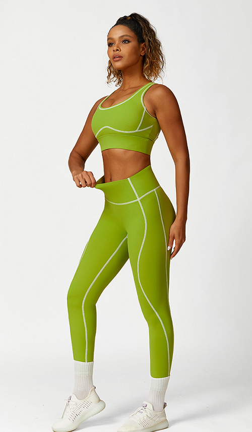 Yoga suit set high waist hip lift no embarrassment line stretch leggings sports beauty back bra yoga fitness wear